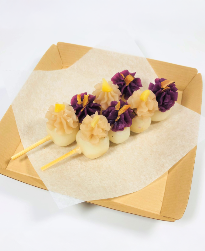 立教カラーの紫いも餡をあしらった特製だんごです。食べれば探偵としての推理力が向上するかも?