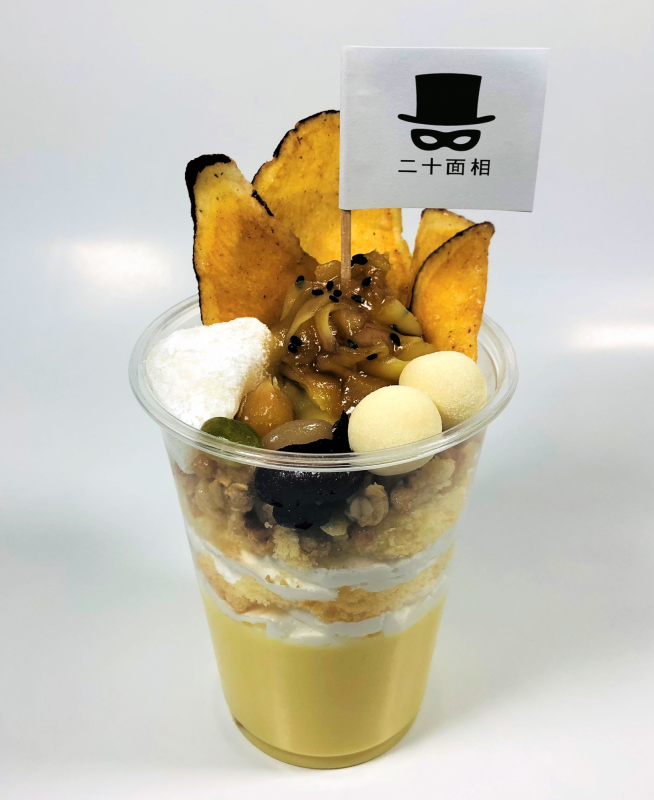 怪人二十面相をモチーフに20の具材が詰まったパフェです。多様な具材が織りなす至高の味をお楽しみください。