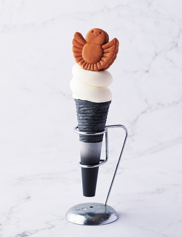 ミルク感たっぷりのなめらかソフトに、可愛らしいすずめ饅頭をトッピング。
