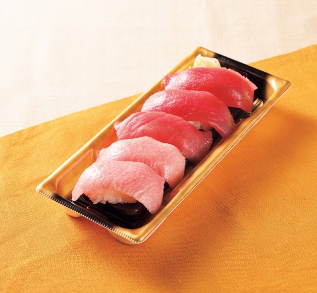 宮城県産の本まぐろの大トロ、中トロ、赤身を贅沢に味わえる握り寿司。