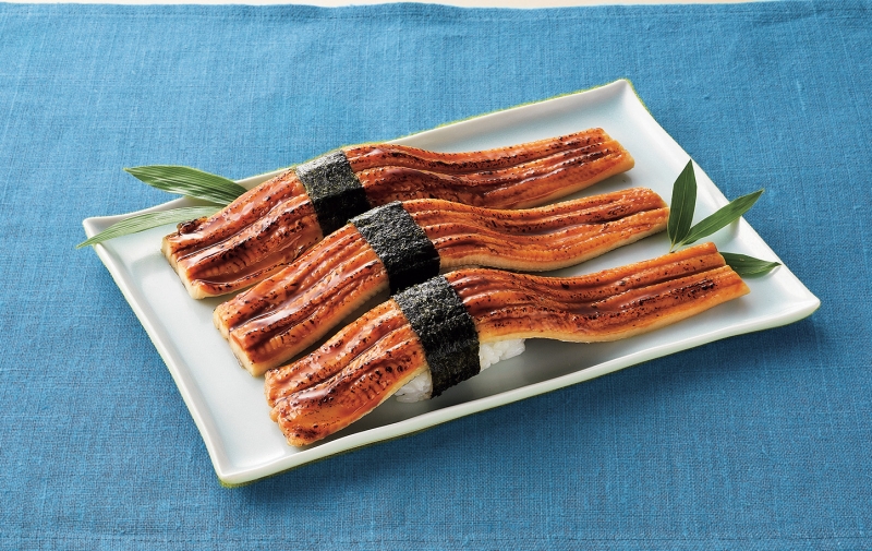 対馬の西側海域で獲れた脂乗りの良い天然穴子を秘伝のたれで仕上げ、香ばしく炙った絶品にぎり寿司。