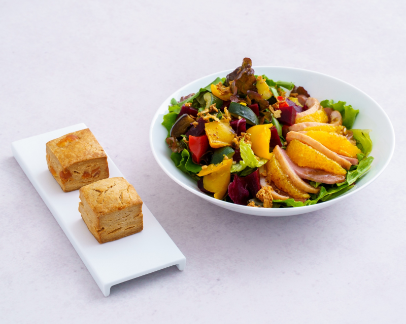 鴨肉の旨みとオレンジの爽やかな酸味が広がる、華やかな一皿。