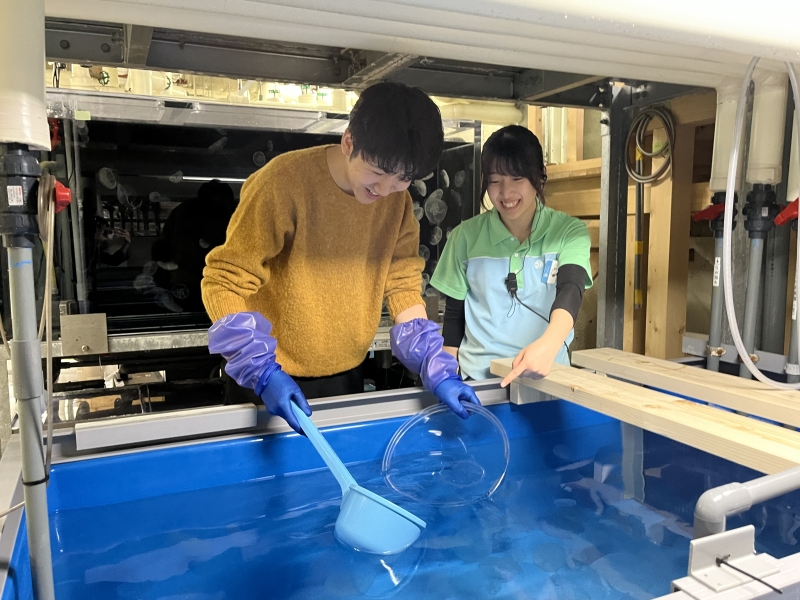 クラゲ水槽へのエサやり体験や、展示デビュー前のクラゲがいる予備水槽から展示水槽へ専用の