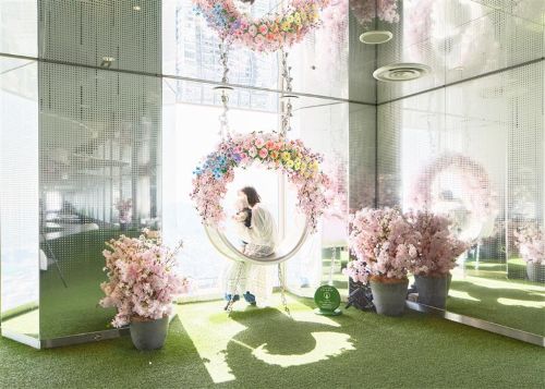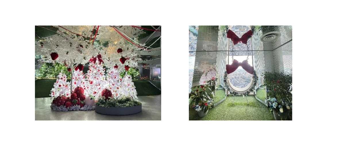 桜をはじめチューリップ、マーガレットローリー、ノボリフジなど春の色鮮やかな花々の装飾が“空の公園”を彩ります。装飾の一部には、生花や豊島区が発祥と伝えられている「ソメイヨシノ」の本物の枝や幹も使用しています。天候や花粉を気にせず、いつでも満開の花々のお花見をお楽しみいただけます。