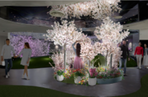 🌸館内いっぱいに咲き誇る桜とカラフルな春の花々の装飾