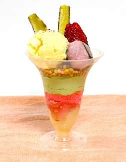甘酒寒天とピーチゼリー、抹茶が合わさり優しく春を感じさせます。