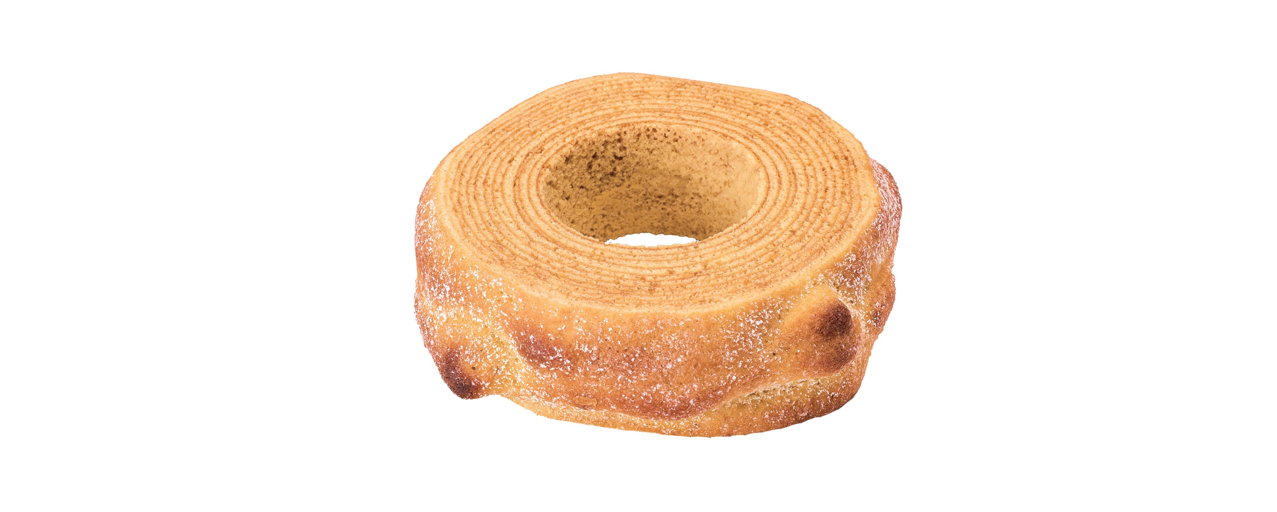 北海道産の小麦、卵、砂糖を使い焼き上げたしっとりバウム、とろけるカスタード、パリッと香ばしいキャラメリゼの三層が織りなす至福の味わい。