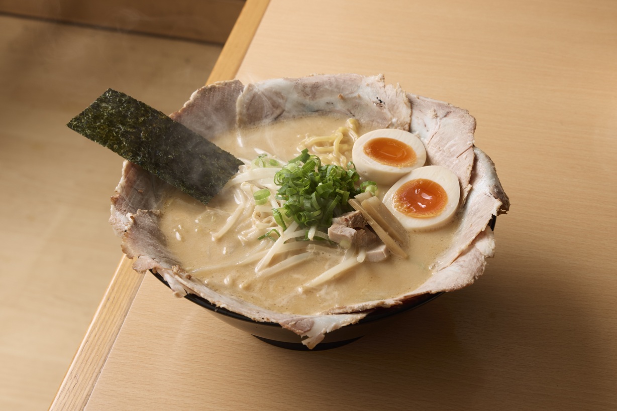優しい味わいの豚骨スープに、北海道産四元豚の肩ロースチャーシューをたっぷり8枚トッピングした東武限定ラーメン。