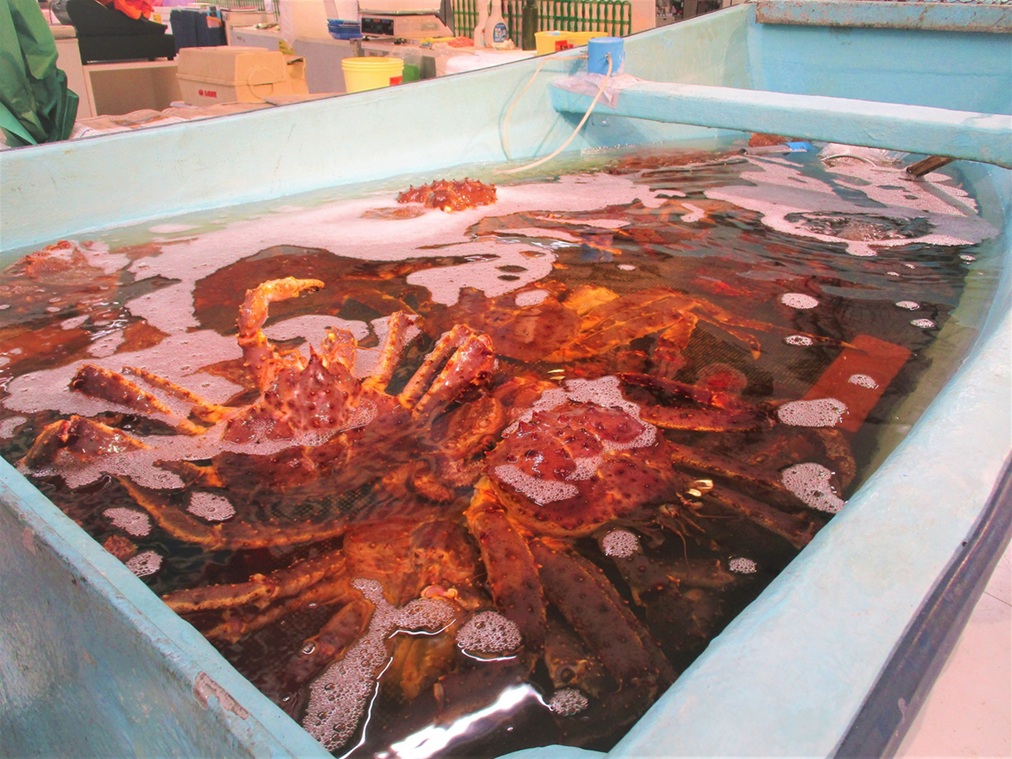 ◆活きた蟹が入った舟形水槽も登場! 今回は海明け毛蟹をご紹介