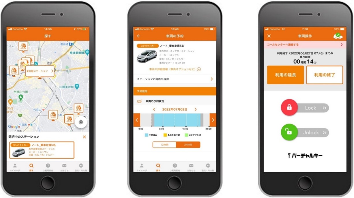 ■「オールタイムレンタカー」ではクルマのスマートキーの機能をスマートフォンに置き換えるスマートロックシステム「バーチャルキー」(株式会社イード、株式会社ジゴワッツ共同ビジネス開発)を導入しています。